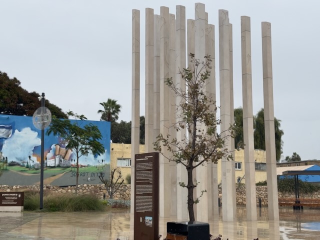 In the early morning hours of Oct 7, 2023, Hamas launched 41 rockets into Sderot and thousands of Nukhba terrorists invaded, killing 73 people. Terrorists barricaded themselves into the police station for hours and were only eliminated when Israelis bulldozed the building. The site where the police station once stood is now the Sderot Memorial and Heroes Park.