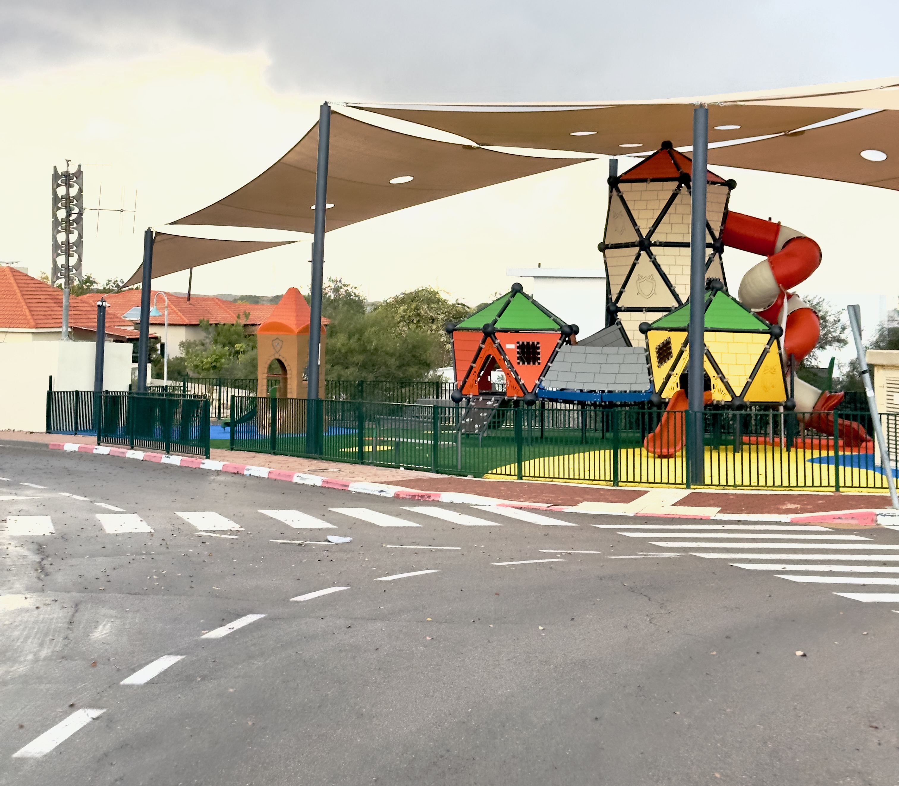 As a sober reminder of the danger posed by being so close to the Gaza border, a bomb shelter stands in the parking lot with a sign that reads: